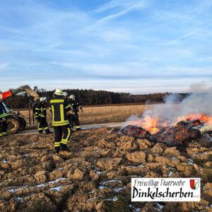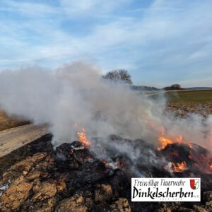Weiter ging es dann am Nachmittag im Ortsteil Grünenbaindt mit Einsatz Nr. 2. Dort brannte auf einem Feld ein Strohballen. Mittels Schnellangriff löschten wir diesen ab. Mit uns im Einsatz war dort die Ortswehr aus Grünenbaindt.