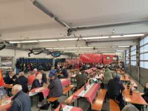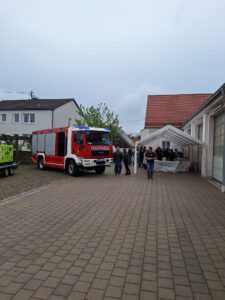 Trotz des ungemütlichen Wetters war unser Mittagstisch sowie das Nachmittagsangebot von Kaffee und Kuchen sehr gut besucht. Bei entspannten Gesprächen und unterhaltsamer Blasmusik konnten zahlreiche Gäste unsere kulinarischen Spezialitäten genießen und sich gleichzeitig über die Technik der Feuerwehr informieren. Am frühen Nachmittag wurden wir zudem zu einem Brandgeruch im Gebäude gerufen. Die großen und kleinen Besucher hatten somit die Gelegenheit, das Ausrücken der Feuerwehr live zu beobachten. Innerhalb von nur zwei Minuten konnten die Einsatzfahrzeuge besetzt und ausgerückt werden. Wir möchten uns herzlich bei allen Besuchern aus nah und fern bedanken, die diesen Tag mit ihrer Anwesenheit bereichert haben. Ein großes Dankeschön gilt auch der Musikvereinigung für die musikalische Umrahmung, den Kuchen- und Tortenbäckerinnen und -bäckern für die leckeren Backwaren sowie den zahlreichen Helfern am Grill, beim Ausschank, beim Kuchenverkauf und im Hintergrund, die zum Gelingen dieses Tages beigetragen haben. Ohne euch alle wäre dieses Event nicht möglich gewesen!
